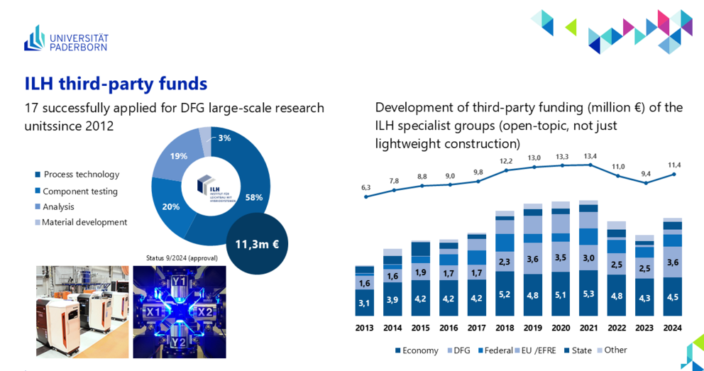 The ILH currently has many research groups from the mechanical engineering (ME) and natural sciences (NC), departments’ chemistry and physics. These include teams that focus on specific materials such as metals, polymers, fibre reinforced composites and hybrid materials or address the interfaces of materials. Others concentrate on technology and processing or on simulation and special investigation methods. This combination of diverse expertise is the basis for complex research issues of hybrid systems, because at the ILH we consider the entire product life cycle of hybrid systems. This extends from material development, product and product system development, production and simulation to repair and recycling concepts.