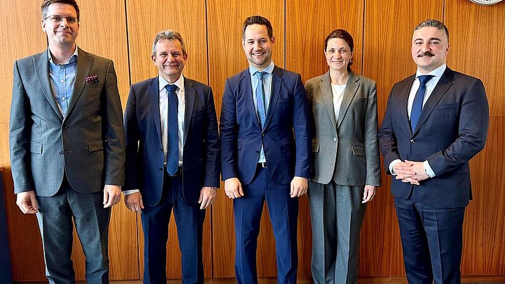 Foto (von links nach rechts): Prof. Dr.-Ing. H.-J. Schmid, Prof. Dr.-Ing. habil. M. Schaper, Lennart Tasche, Prof. Dr. T. Tröster, Dr.-Ing. F. Hengsbach (Foto: M. Klöckner)